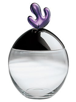 Galletero en vidrio cristalino con tapa en acero brillante y pomo en SAN en color azul.