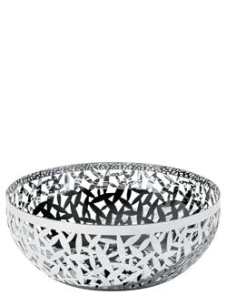 Frutera escultórica perforada realizada en acero inoxidable 18/10 brillante.