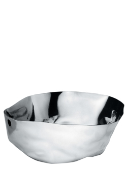 Original ensaladera escultórica de forma irregular realizada en acero inoxidable 18/10 brillante.