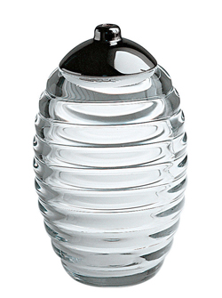Azucarero escultórico en forma de panal de abeja con esparcidor, realizado en vidrio cristalino con tapa en acero brillante.