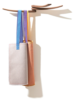 Perchero de pared, compuesto por tres brazos superpuestos y movibles de madera maciza de nogal. Un toque de calidez y originalidad.