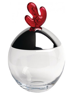 Galletero en vidrio cristalino con tapa en acero brillante y pomo en SAN en color rojo.