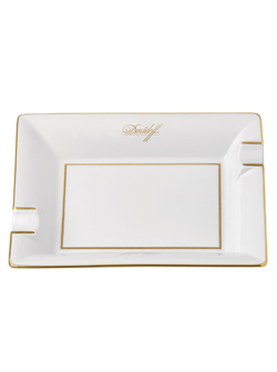Cenicero rectangular de porcelana para dos puros con detalles en oro 14k, concebido para quienes buscan elegancia premium que no ocupe espacio.